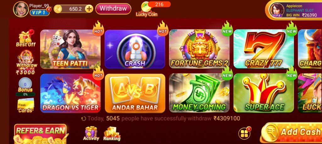 Dive into the sector of exhilaration with 3f game, your last destination for real-money gaming! enjoy exciting games like Rummy, Slots, and more even as grabbing each day bonus rewards starting from ₹50 to ₹500.
